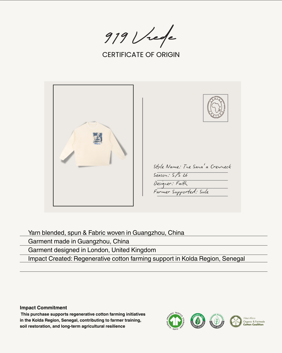 THE SANA’A CREWNECK TRACEABILITY